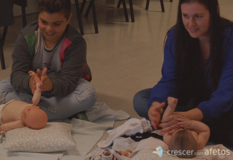 - Inclui o ensino de técnicas de massagem e discussões parentais sobre diferentes temas como o sono, o choro e as cólicas.